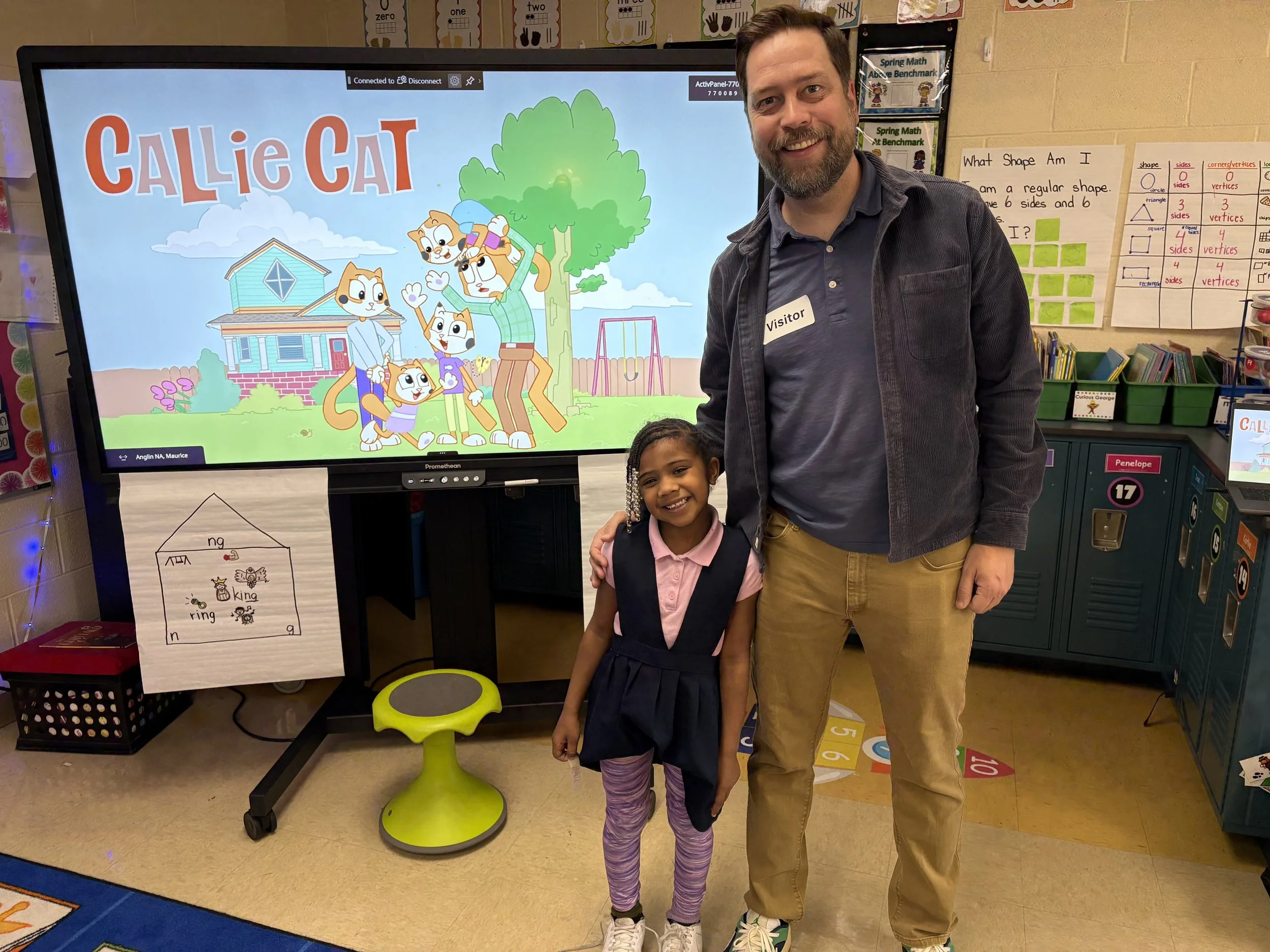 The creator of Callie Cat, CK James, recently visited Chadwell Elementary! He shared the world of Callie Cat with multiple classes and showed the kids some behind-the-scenes realities for how some of their favorite tv shows get made. It was an incredible visit! Thanks to Chadwell Elementary for the invitation to share Callie Cat with the kids!